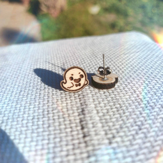 KAWAII GHOST WOOD EARRINGS